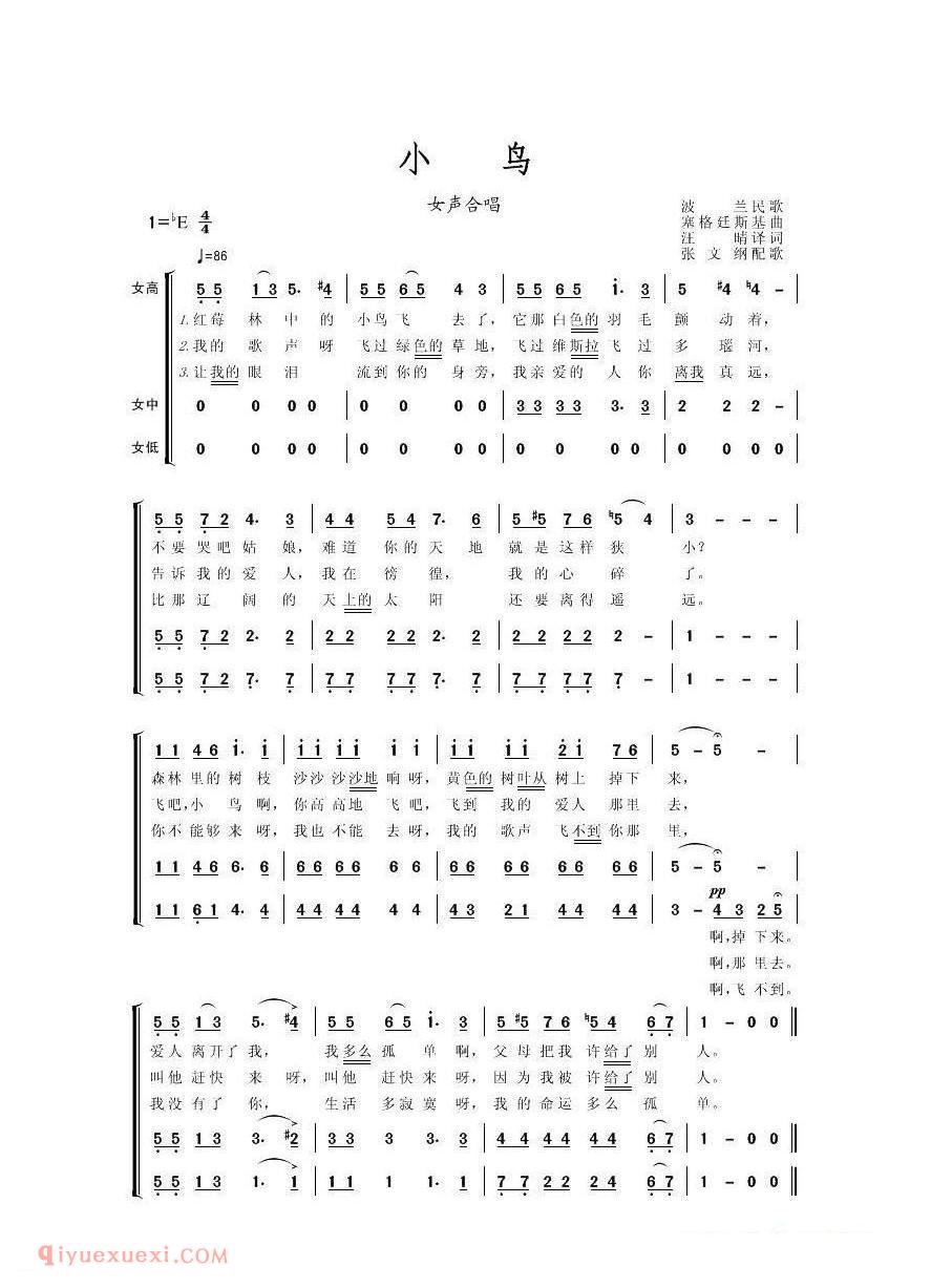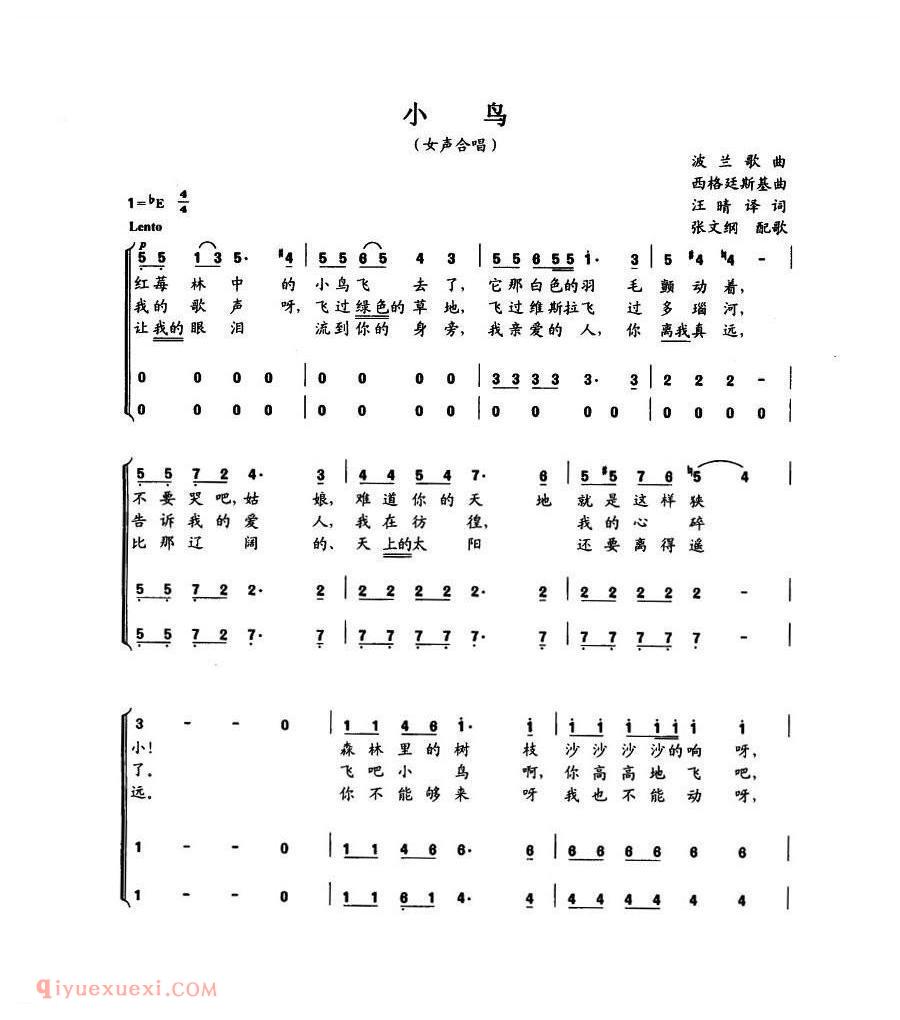 佚名 网络小鸟 | 波兰高清简谱歌词是器乐学习网于2021年07月17日 16:43:32更新分享的合唱歌谱;资源收录于合唱歌谱栏目中;器乐学习网免费分享小鸟 | 波兰简谱与五线谱歌谱图片,欢迎在线免费下载;器乐学习网无需注册会员,直接免费下载各类乐器学习资源及乐谱。