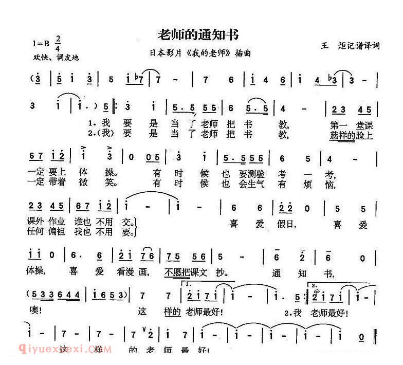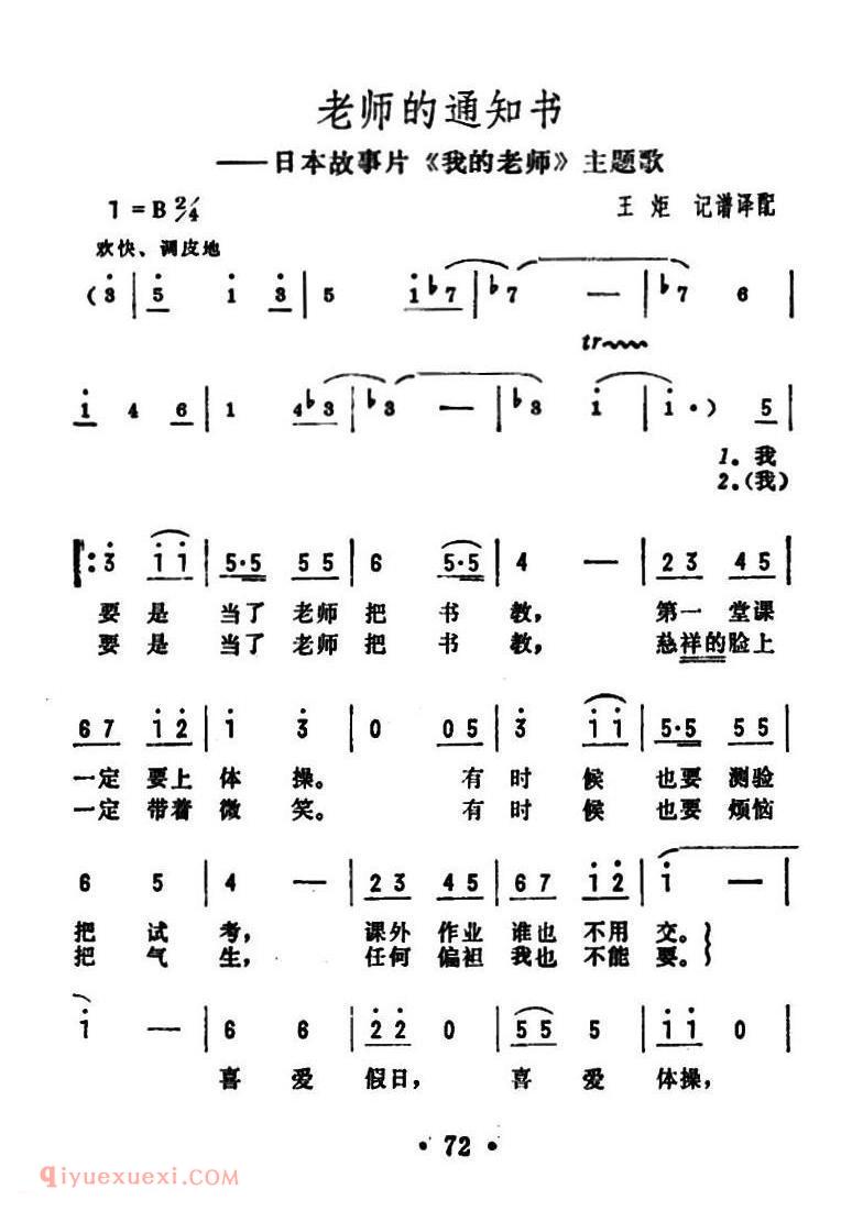 老师的通知书/日本故事片/我的老师主题歌高清简谱歌词是器乐学习网于2021年07月25日 15:56:10更新分享的外国歌谱;资源收录于外国歌谱栏目中;器乐学习网免费分享老师的通知书/日本故事片/我的老师主题歌简谱与五线谱歌谱图片,欢迎在线免费下载;器乐学习网无需注册会员,直接免费下载各类乐器学习资源及乐谱。