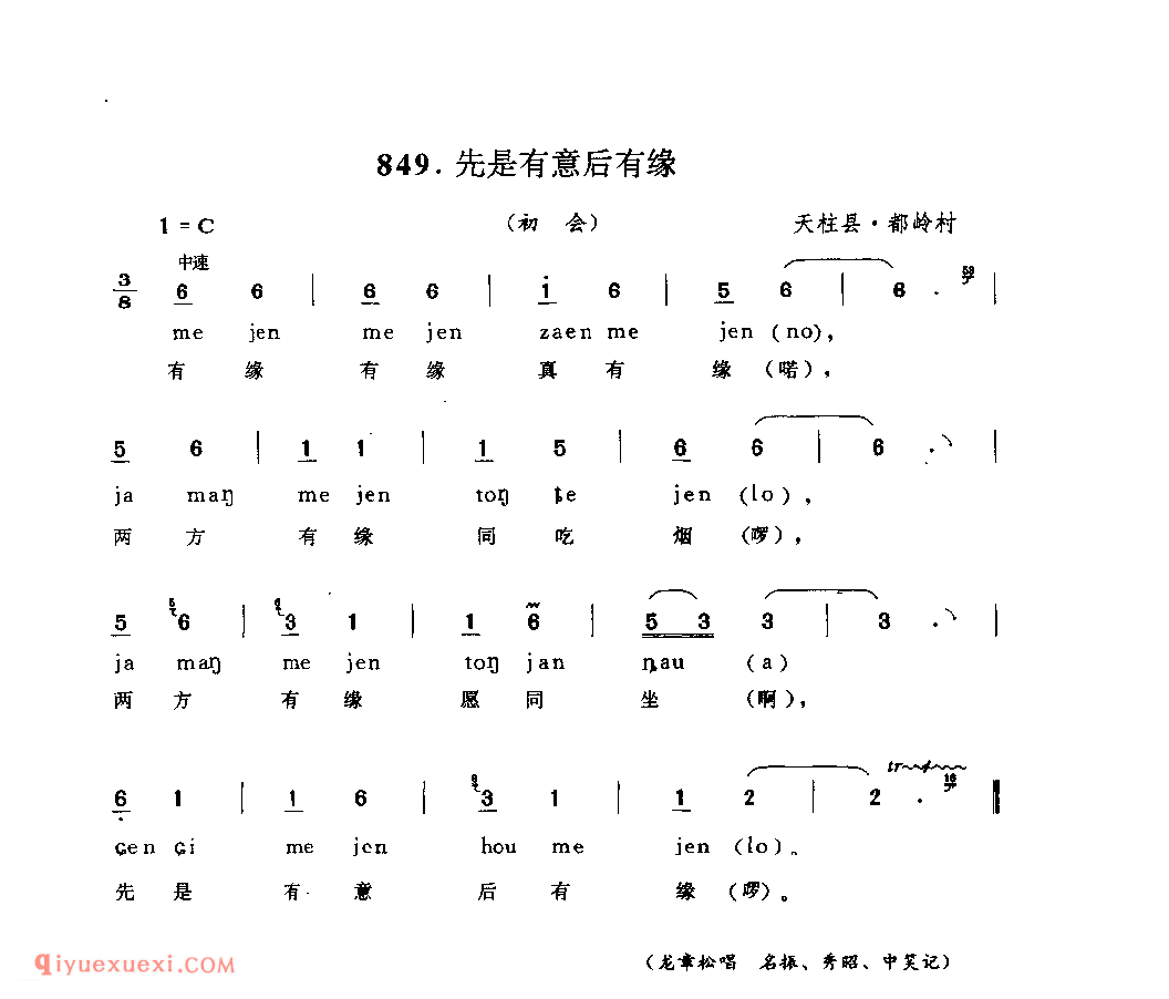 先是有意后有缘(初会) 天柱县·都岭村_阿外炎(玩山歌)_贵州民间歌曲简谱