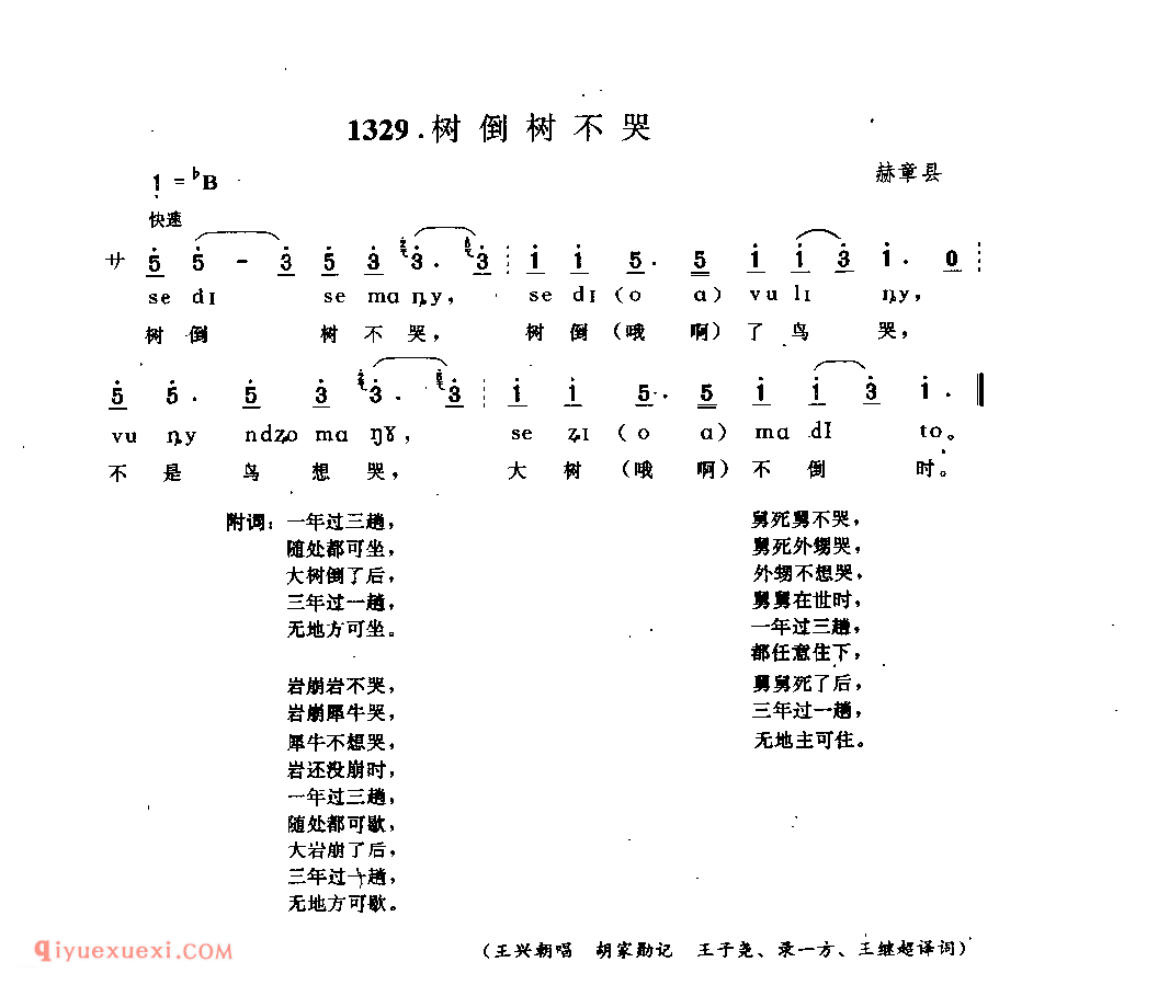 树倒树不哭 赫章县_裉洪_贵州民间歌曲简谱