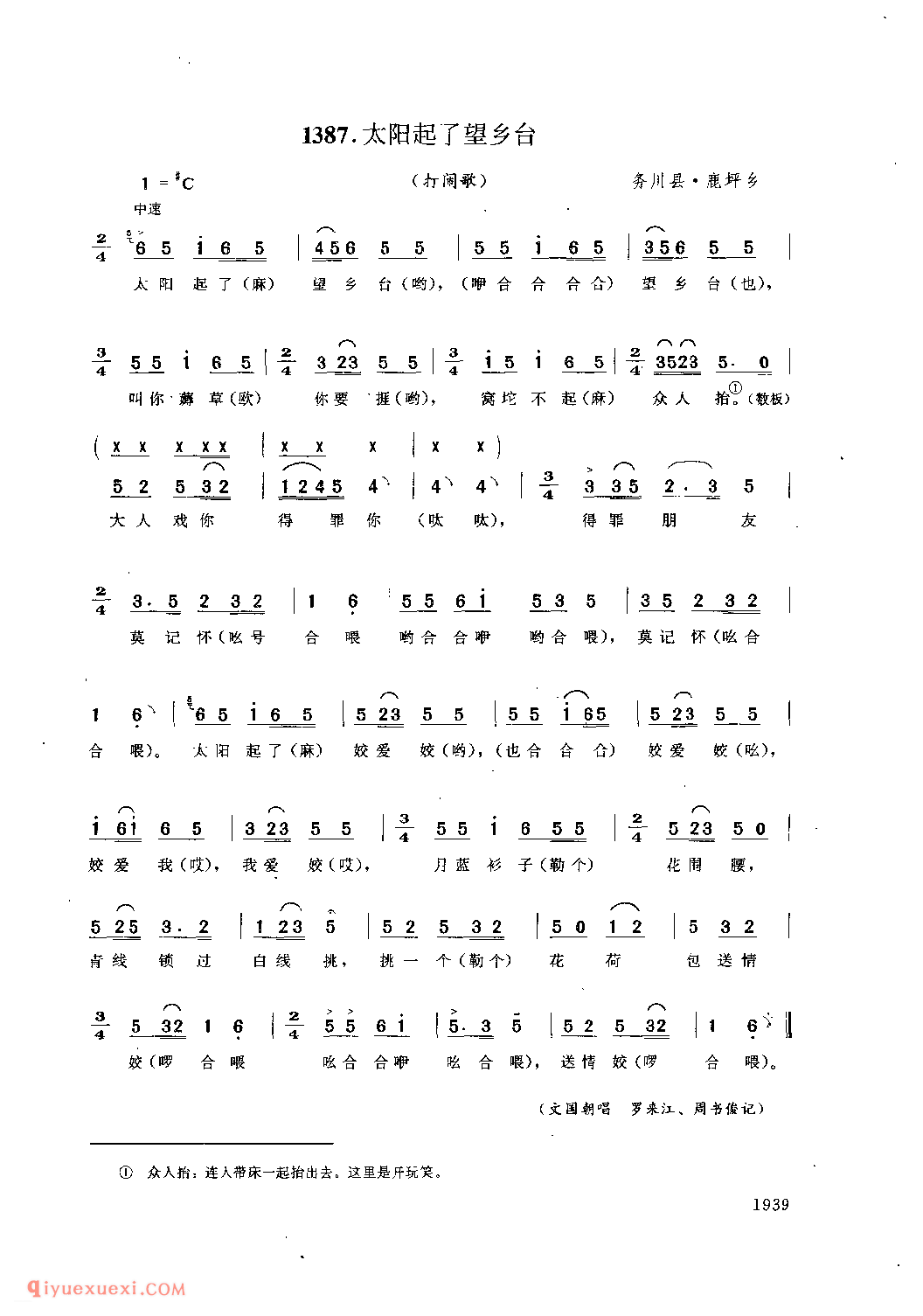 太阳起了望乡台(打闹歌) 务川县·鹿坪乡_劳动山歌_贵州民间歌曲简谱