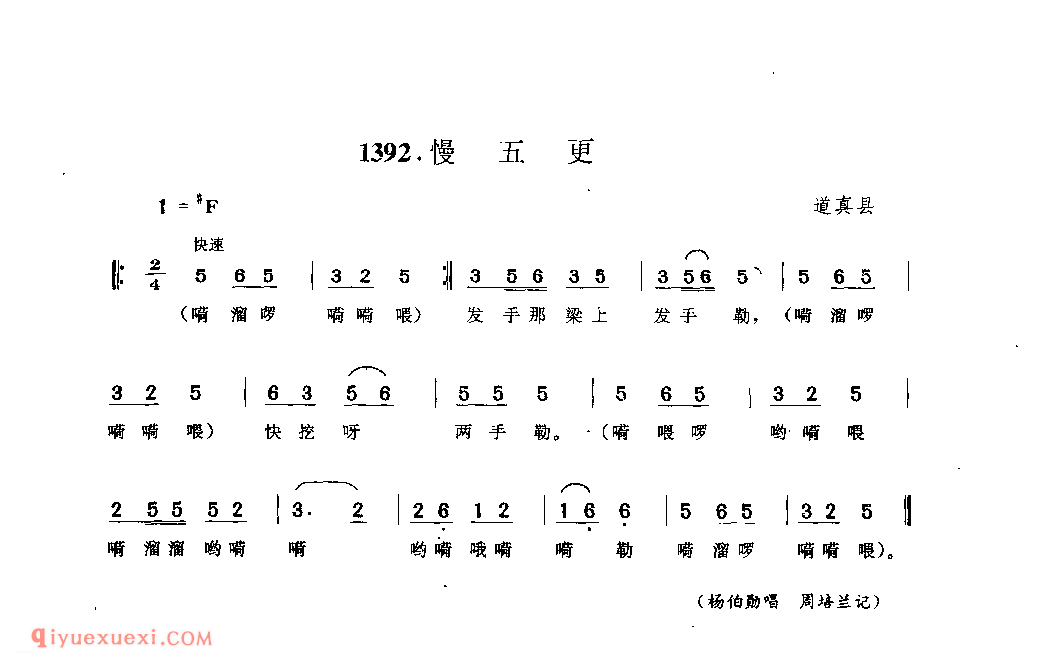 慢五更 道真县_劳动山歌_贵州民间歌曲简谱