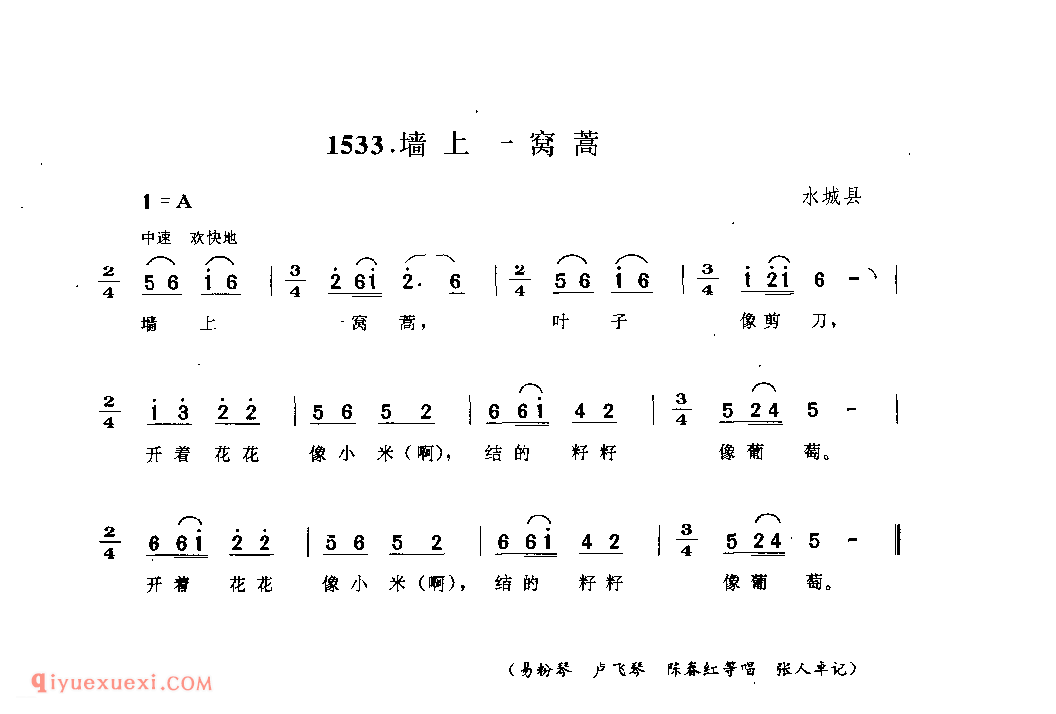 墙上一窝蒿 晴隆县_祭祀歌_贵州民间歌曲简谱