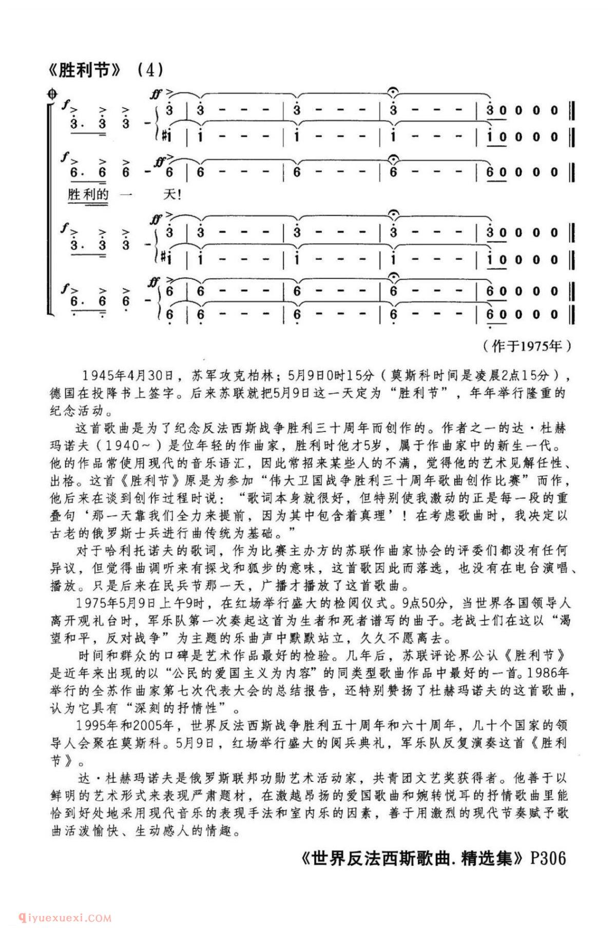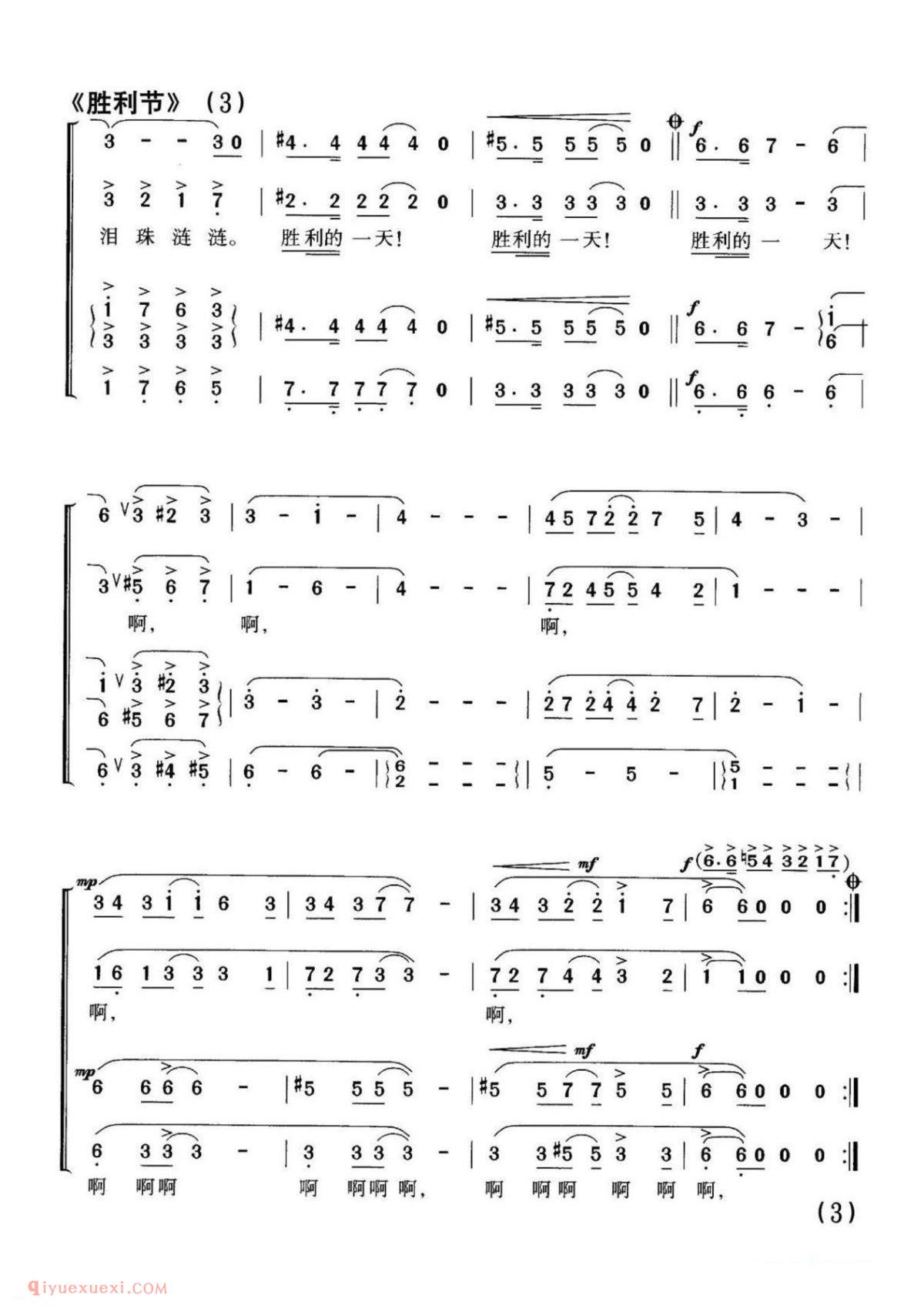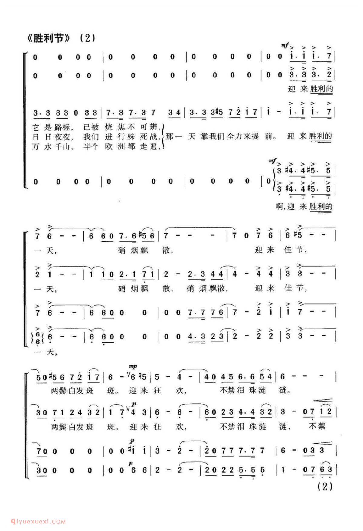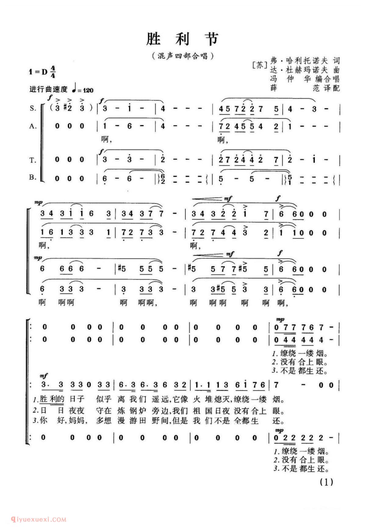 胜利节 混声四部合唱 | 前苏联高清简谱歌词是器乐学习网于2021年08月12日 22:10:57更新分享的合唱歌谱;资源收录于合唱歌谱栏目中;器乐学习网免费分享胜利节 混声四部合唱 | 前苏联简谱与五线谱歌谱图片,欢迎在线免费下载;器乐学习网无需注册会员,直接免费下载各类乐器学习资源及乐谱。