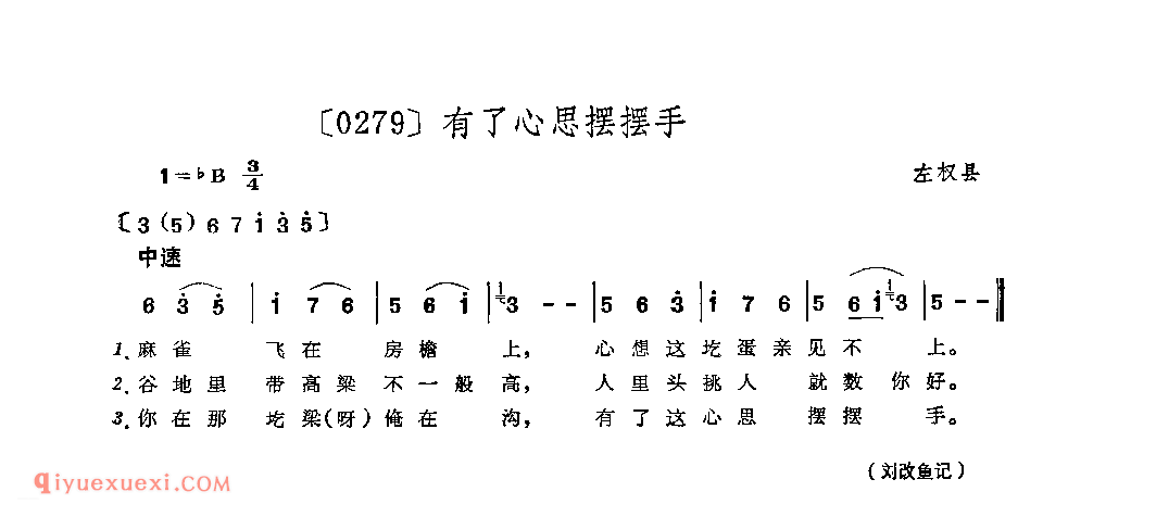 有了心思摆摆手&左权县_开花调_山西民间歌曲简谱