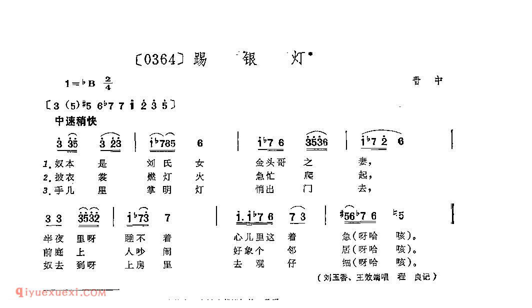 踢银灯&晋中_秧歌_山西民间歌曲简谱