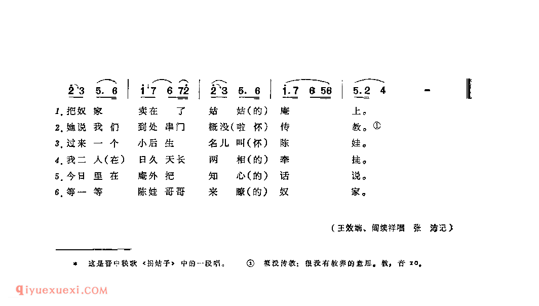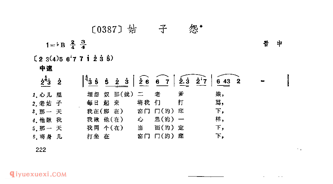 姑子怨&晋中_秧歌_山西民间歌曲简谱