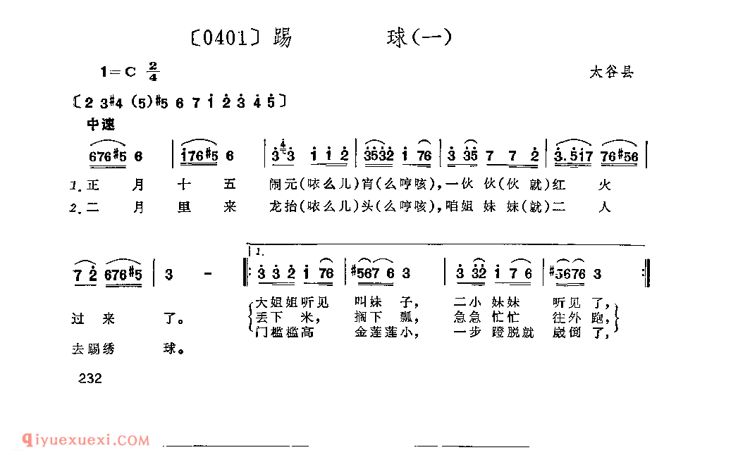 踢球(一)&太谷县_秧歌_山西民间歌曲简谱
