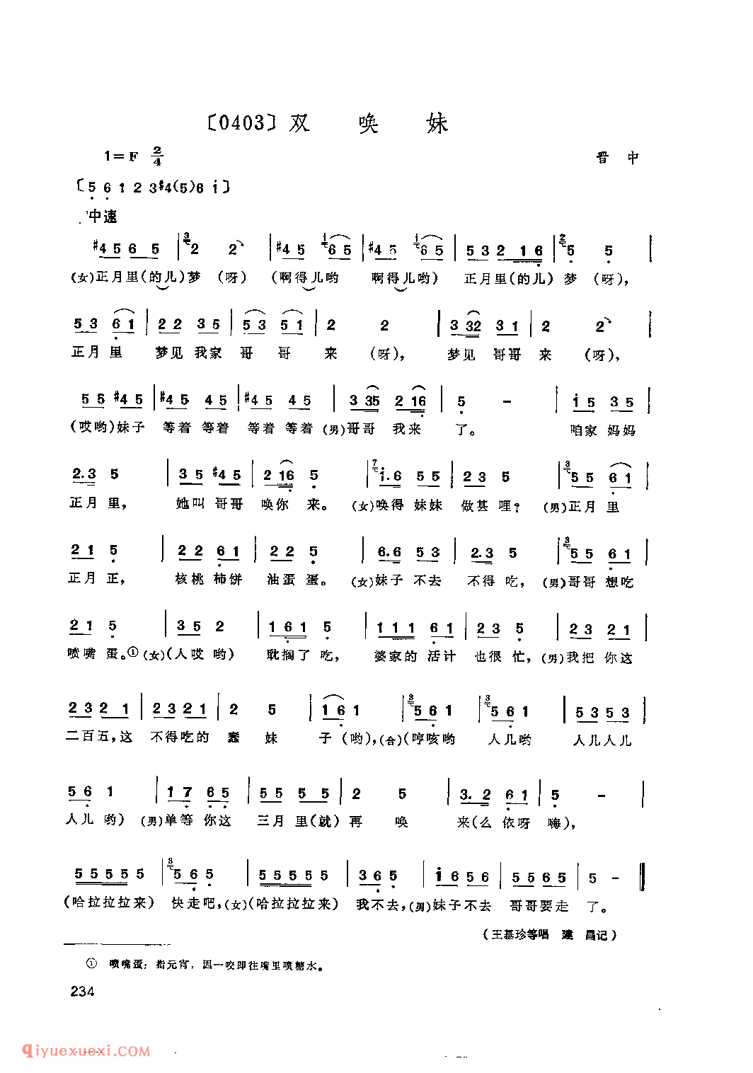 双唤妹&晋中_秧歌_山西民间歌曲简谱