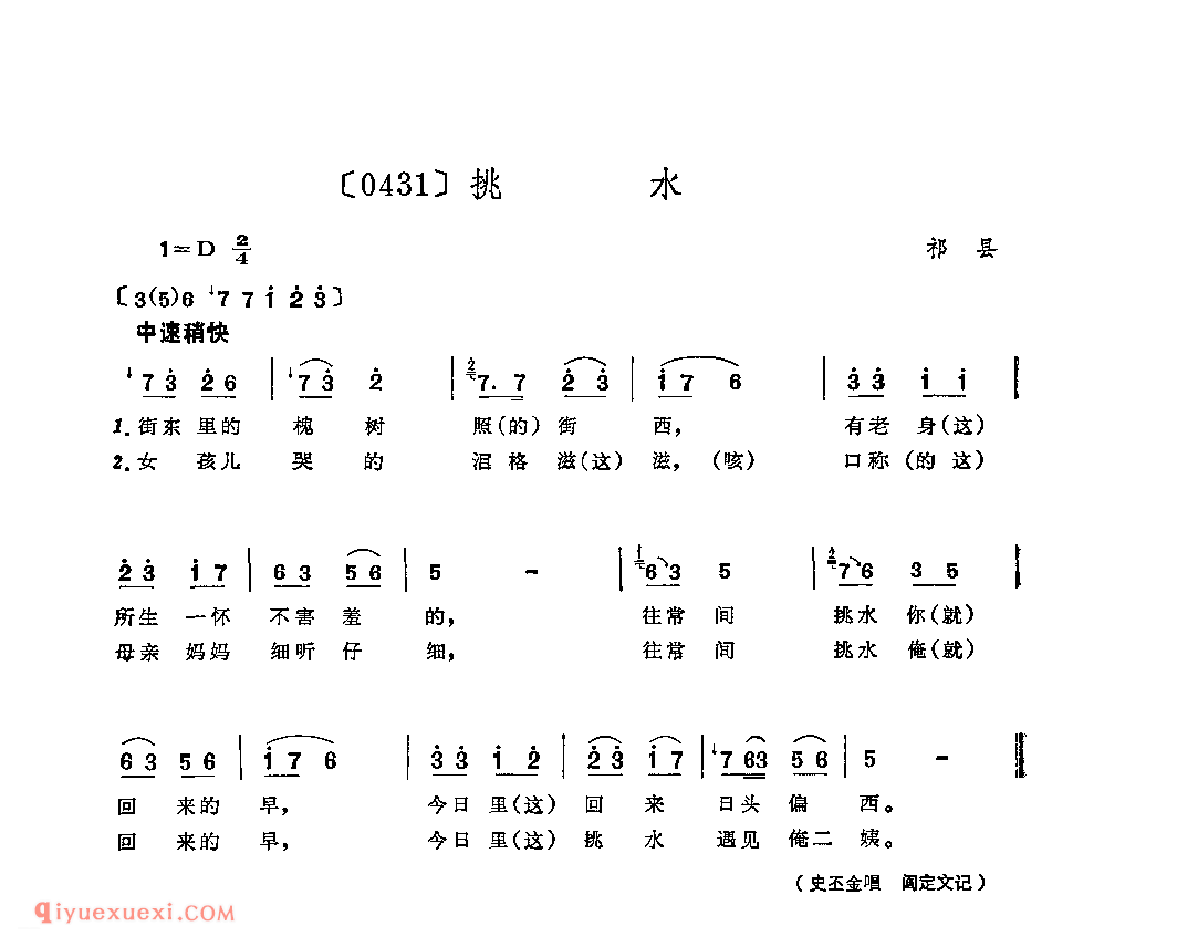 挑水&祁县_秧歌_山西民间歌曲简谱