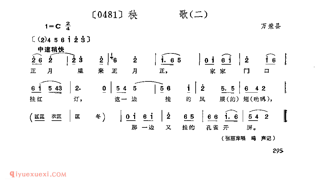 秧歌(二)&万荣县_秧歌_山西民间歌曲简谱高清简谱歌词是器乐学习网于2022年09月05日 09:40:39更新分享的民歌曲谱;资源收录于民歌曲谱栏目中;器乐学习网免费分享秧歌(二)&万荣县_秧歌_山西民间歌曲简谱简谱与五线谱歌谱图片,欢迎在线免费下载;器乐学习网无需注册会员,直接免费下载各类乐器学习资源及乐谱。