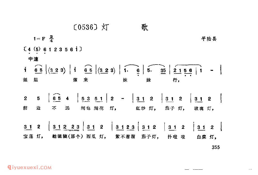 灯歌&平陆县_秧歌_山西民间歌曲简谱