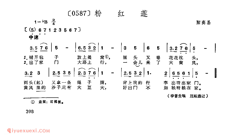 粉红莲&阳高县_秧歌_山西民间歌曲简谱
