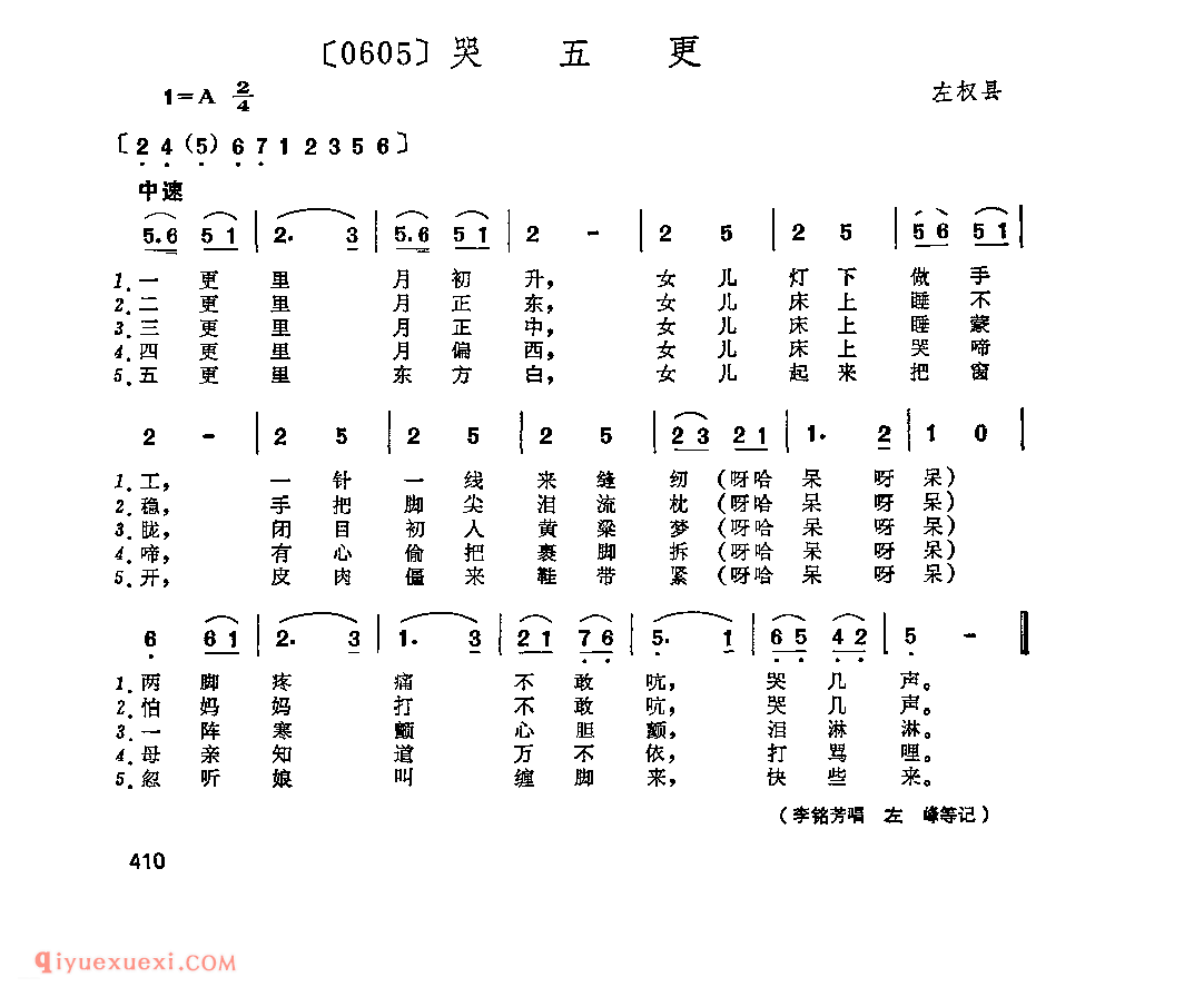 哭五更&左权县_秧歌_山西民间歌曲简谱
