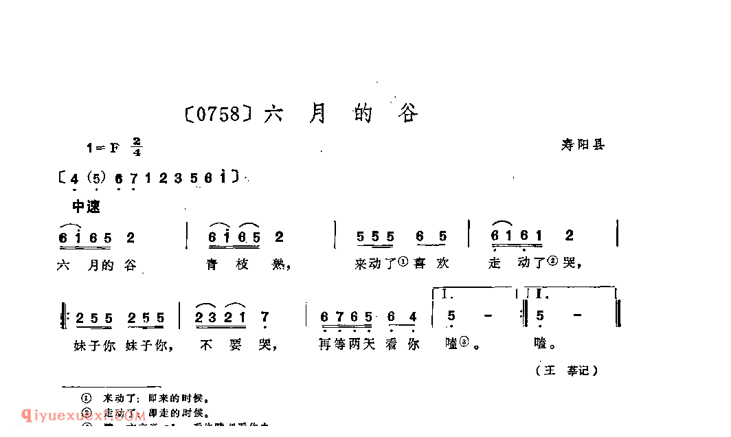 六月的谷&寿阳县_小调类_山西民间歌曲简谱
