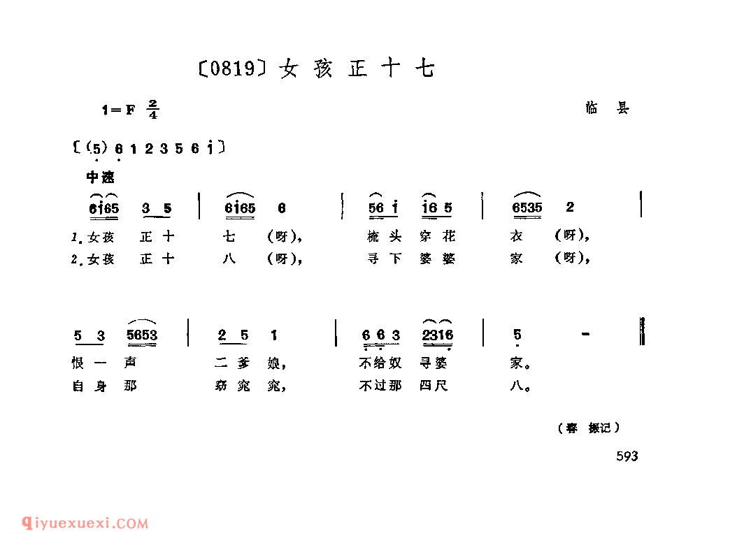 女孩正十七&临县_小调类_山西民间歌曲简谱