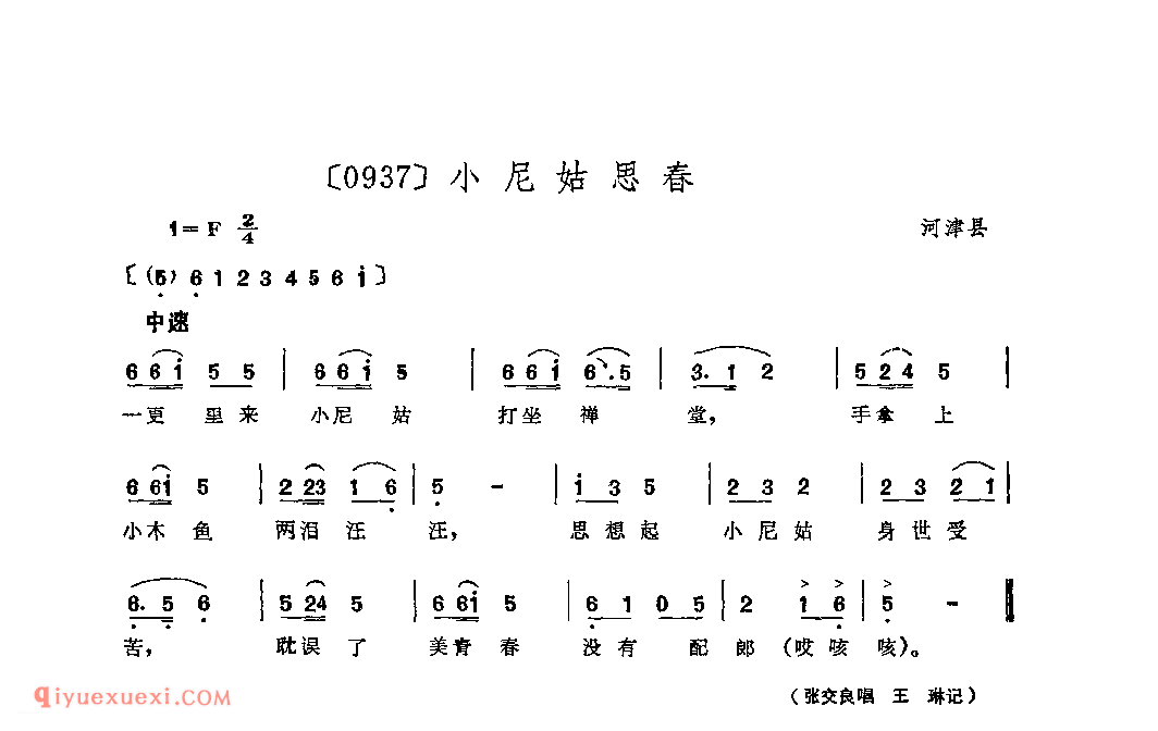 小尼姑思春&河津县_小调类_山西民间歌曲简谱