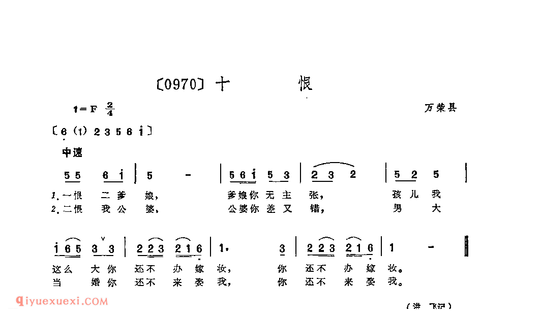 十恨&万荣县_小调类_山西民间歌曲简谱