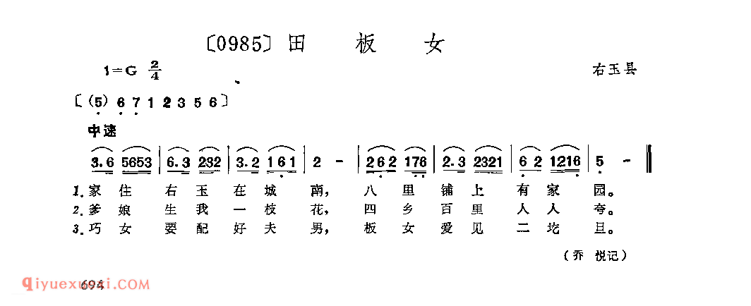田板女&右玉县_小调类_山西民间歌曲简谱