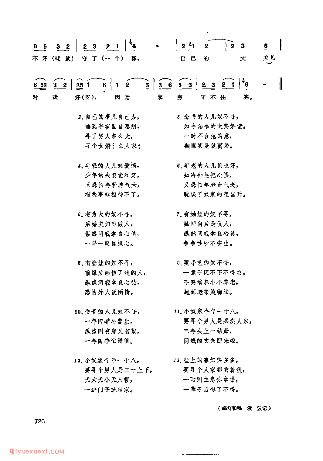 小寡妇寻人家&定襄县_小调类_山西民间歌曲简谱