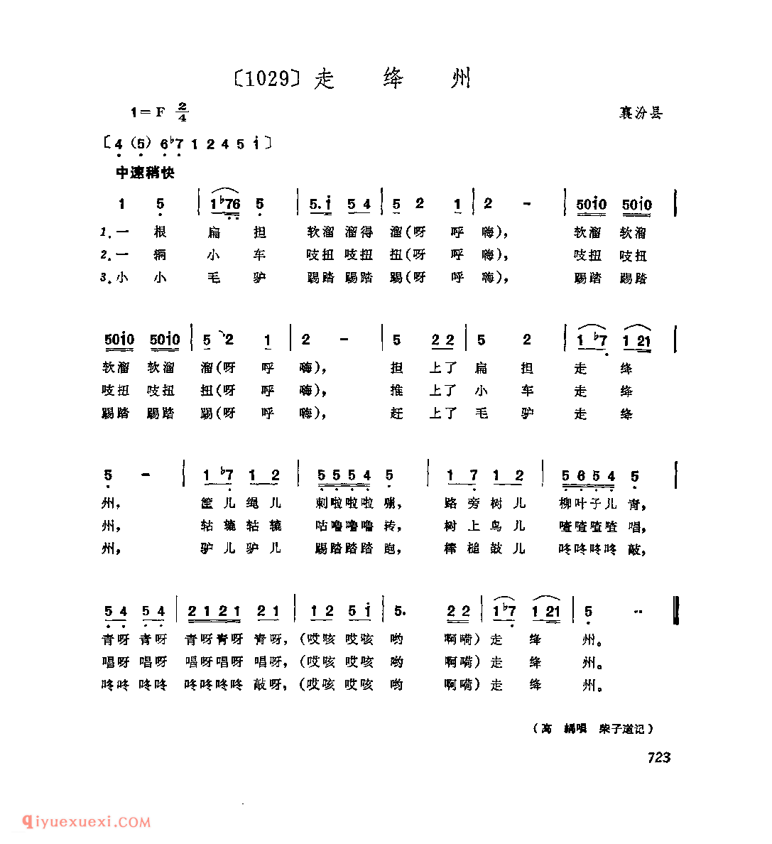 走绛州&襄汾县_小调类_山西民间歌曲简谱