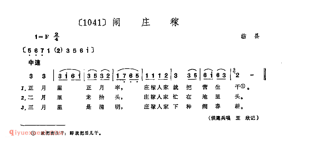 闹庄稼&临县_小调类_山西民间歌曲简谱