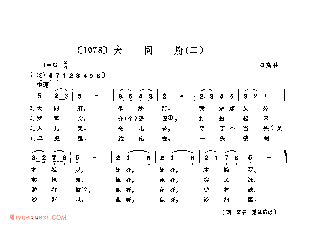 大同府(二)&阳高县_小调类_山西民间歌曲简谱