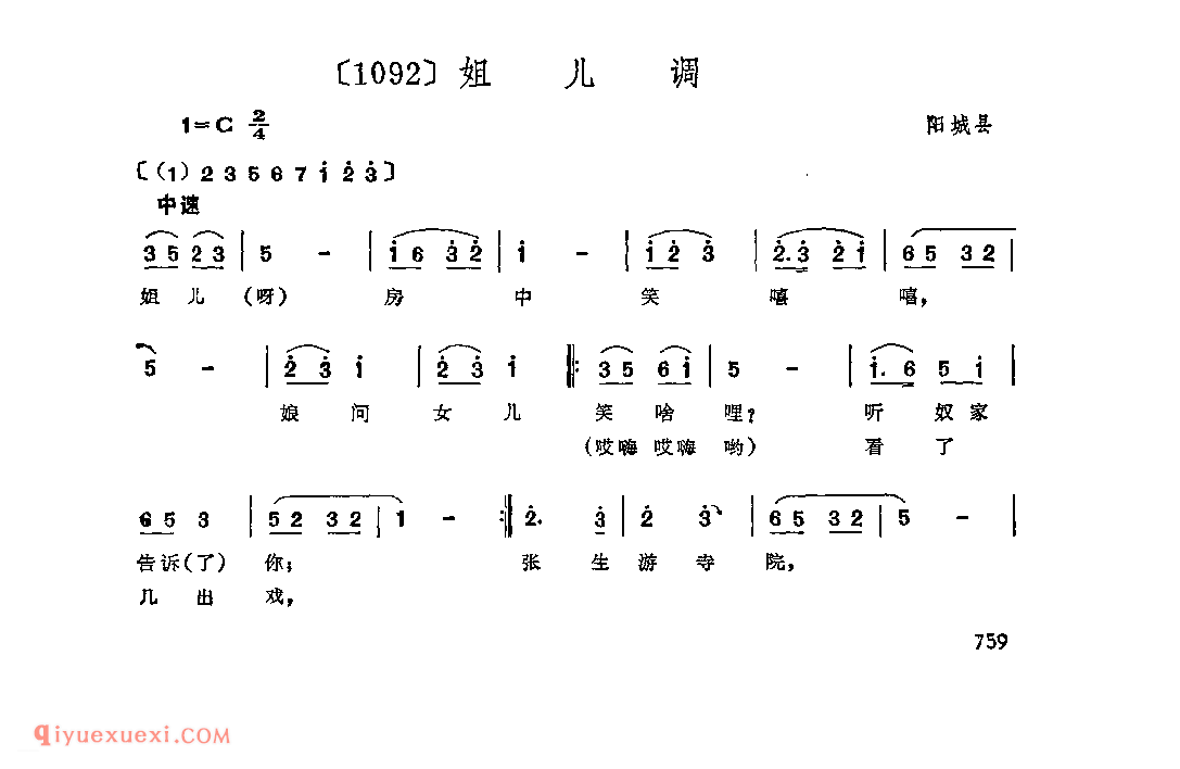 姐儿调&阳城县_小调类_山西民间歌曲简谱