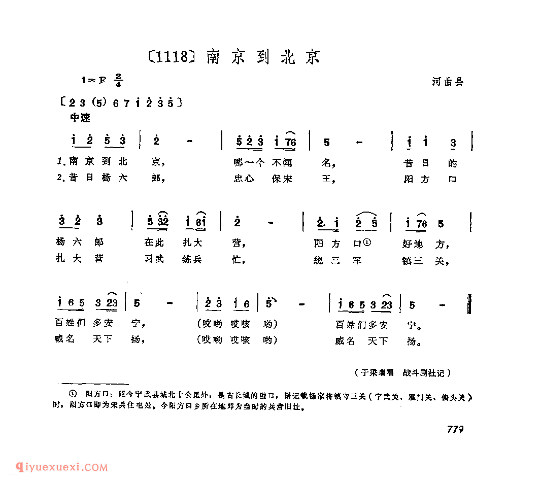 南京到北京&河曲县_小调类_山西民间歌曲简谱