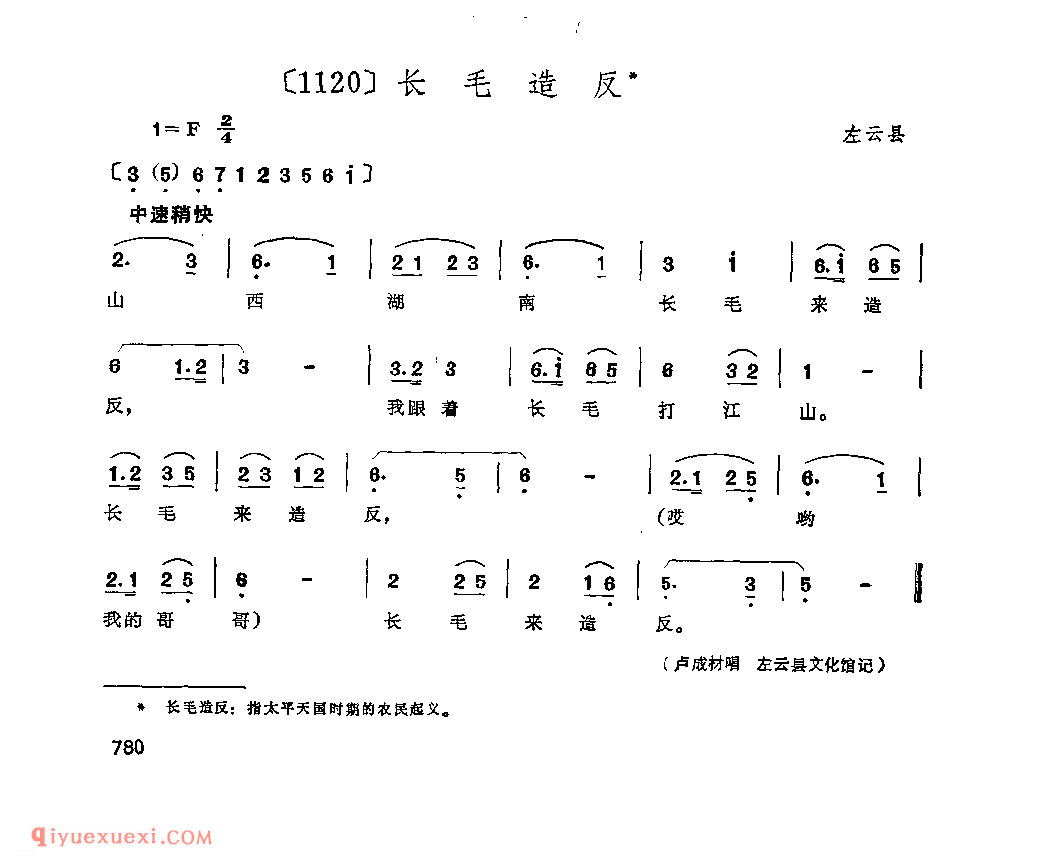 长毛造反&左云县_小调类_山西民间歌曲简谱