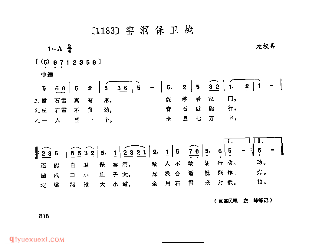 窑洞保卫战&左权县_小调类_山西民间歌曲简谱