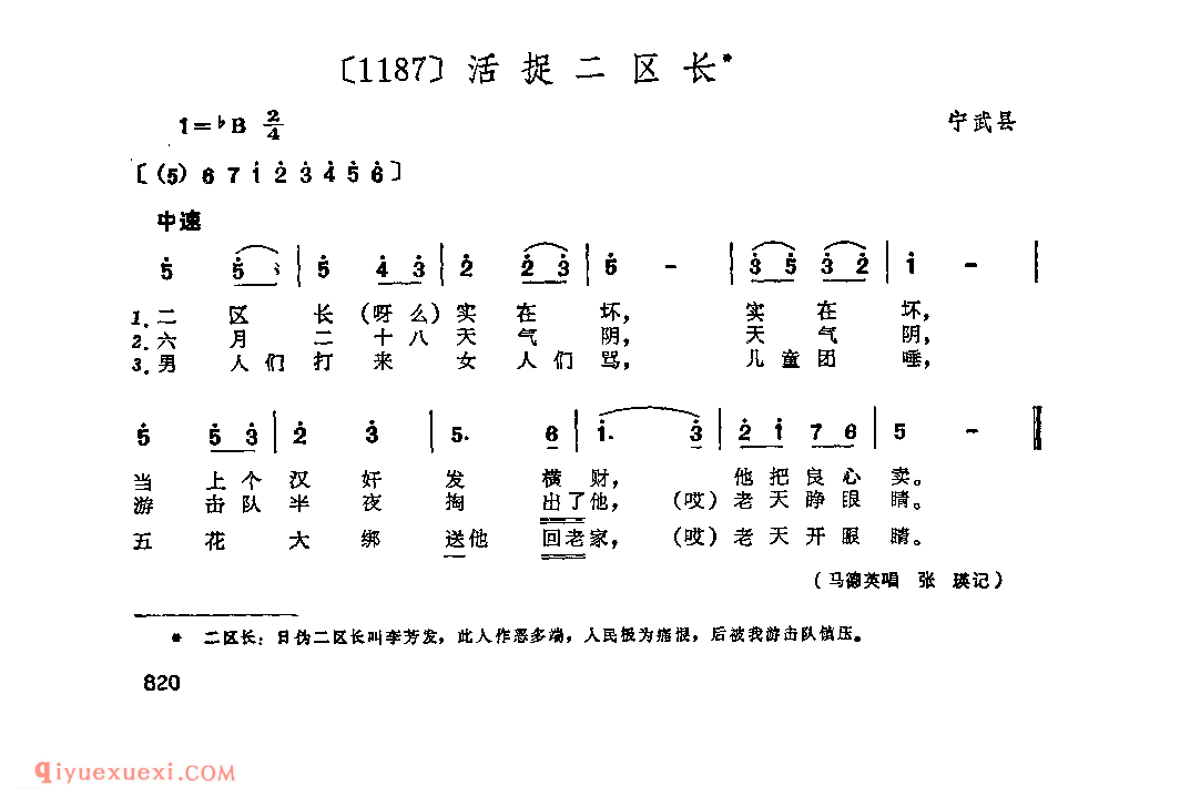 活捉二区长&宁武县_小调类_山西民间歌曲简谱