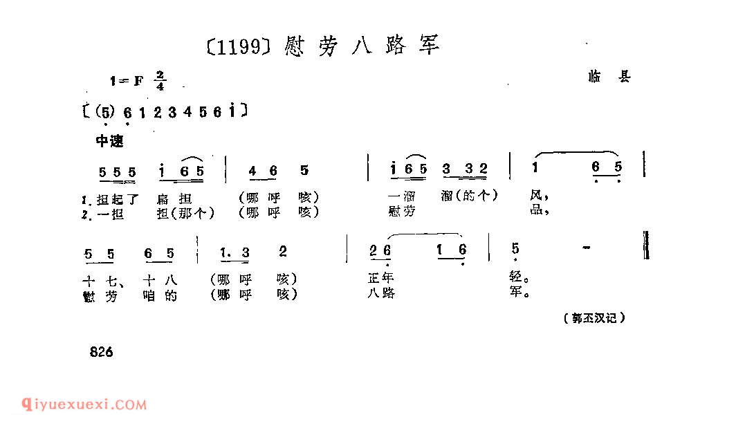 慰劳八路军&临县_小调类_山西民间歌曲简谱