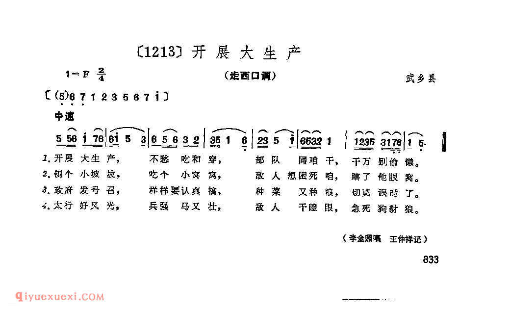 开展大生产&武乡县_小调类_山西民间歌曲简谱