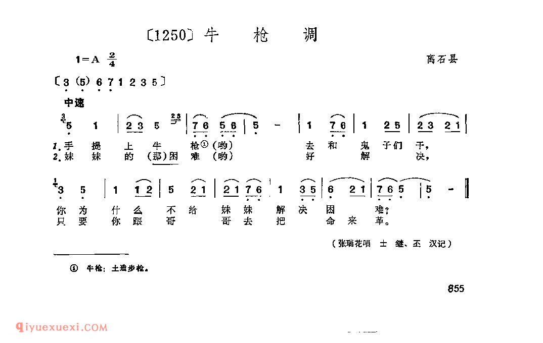 牛枪调&离石县_小调类_山西民间歌曲简谱