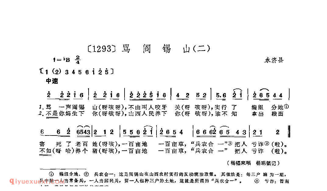 骂阎锡山(二)&永济县_小调类_山西民间歌曲简谱
