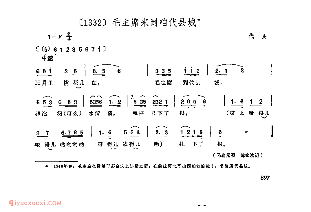 毛主席来到咱代县城&代县_小调类_山西民间歌曲简谱