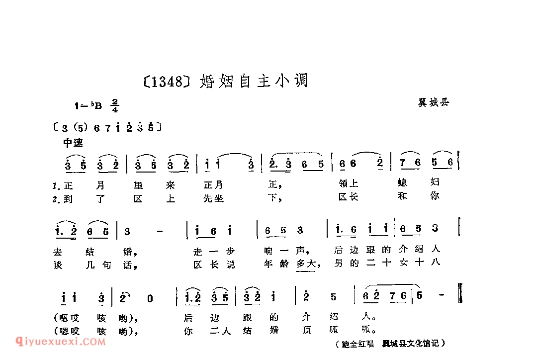婚姻自主小调&翼城县_小调类_山西民间歌曲简谱