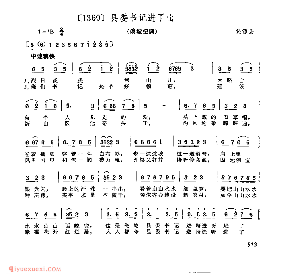 县委书记进了山&沁源县_小调类_山西民间歌曲简谱高清简谱歌词是器乐学习网于2022年09月20日 10:08:10更新分享的民歌曲谱;资源收录于民歌曲谱栏目中;器乐学习网免费分享县委书记进了山&沁源县_小调类_山西民间歌曲简谱简谱与五线谱歌谱图片,欢迎在线免费下载;器乐学习网无需注册会员,直接免费下载各类乐器学习资源及乐谱。