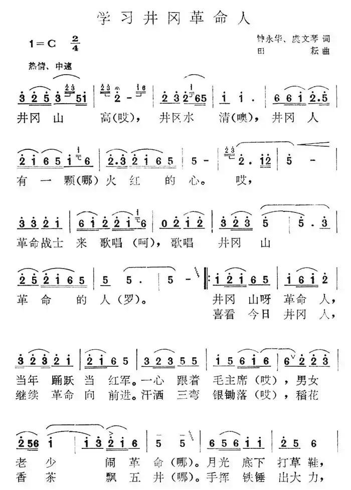 学习井冈革命人曲谱简谱五线谱,学习井冈革命人民歌乐曲谱图片