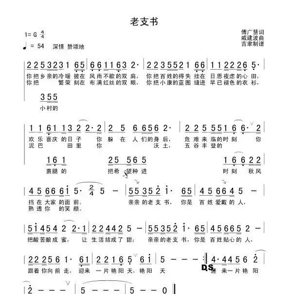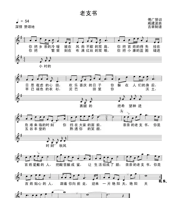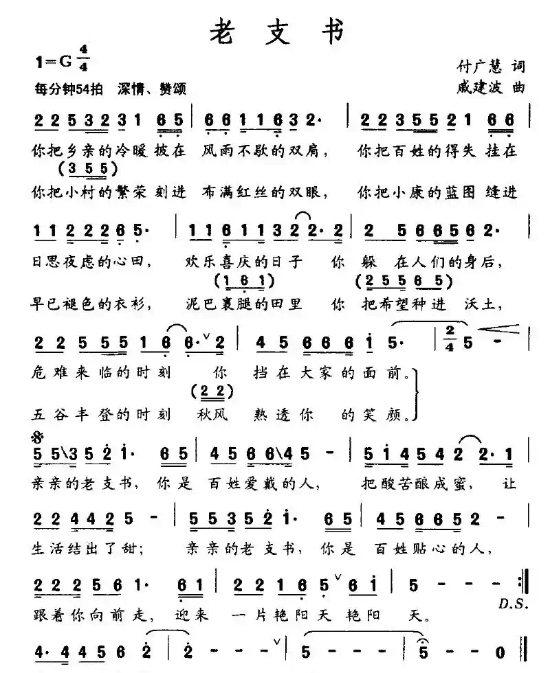 老支书曲谱简谱五线谱,老支书民歌乐曲谱图片