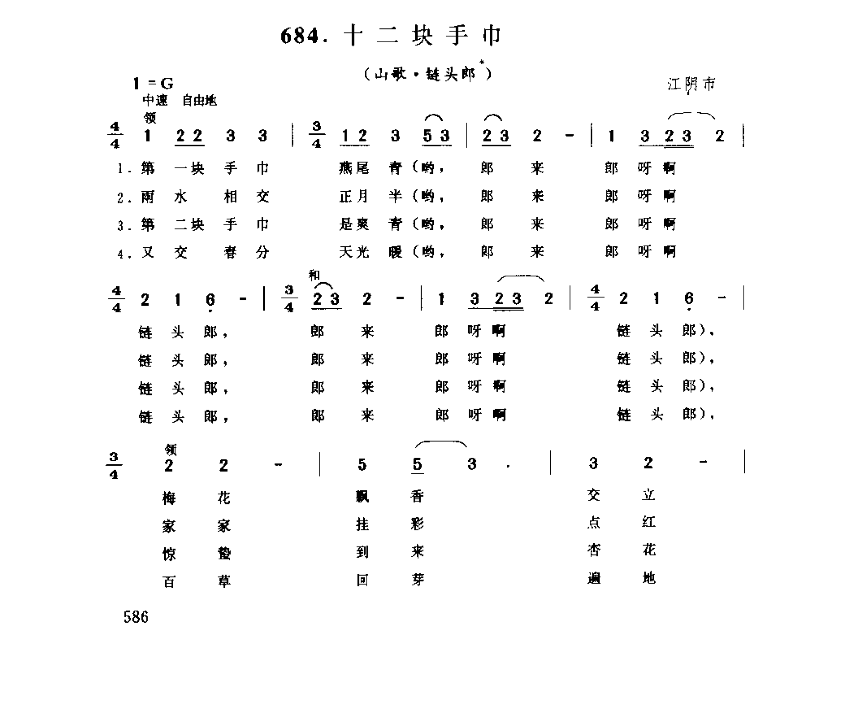 山歌:十二块手巾(山歌·链头郎) 江阴市
