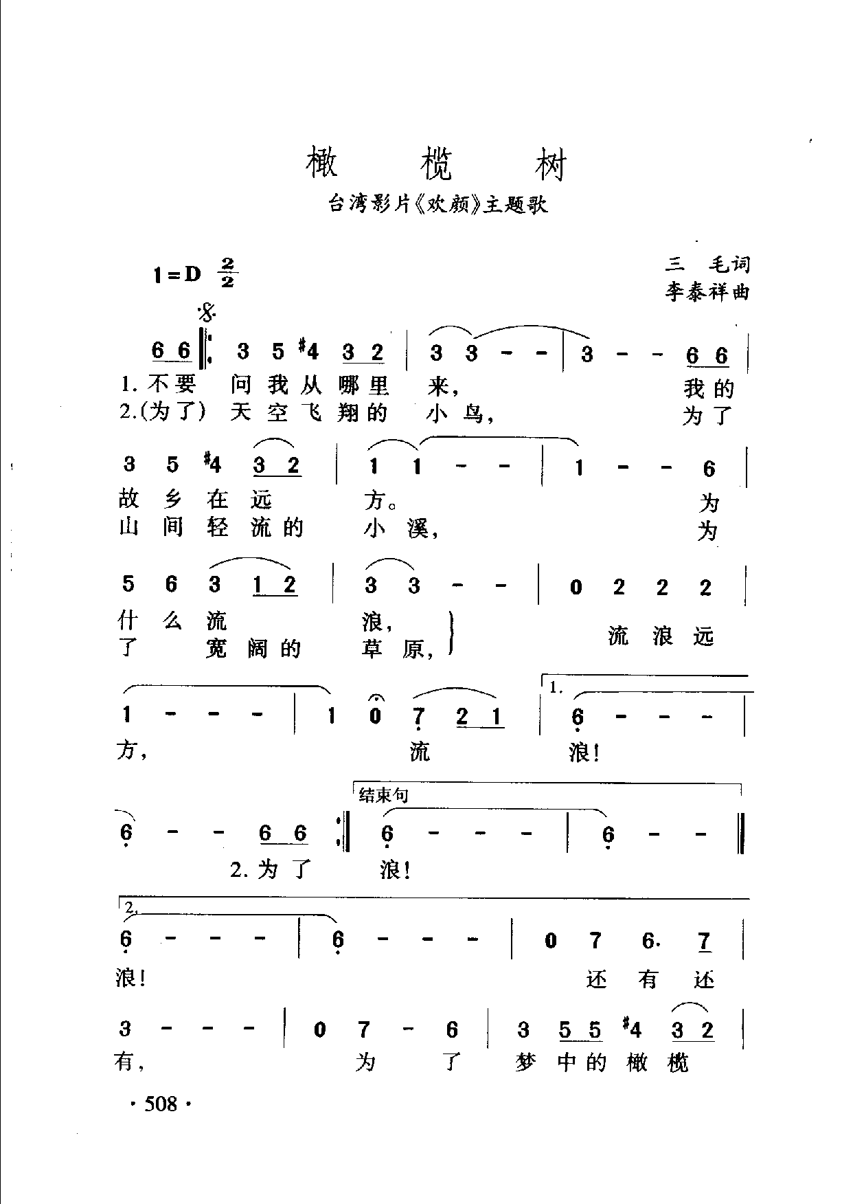 橄榄树(台湾影片《欢颜》主题歌)三毛词 李秦祥曲