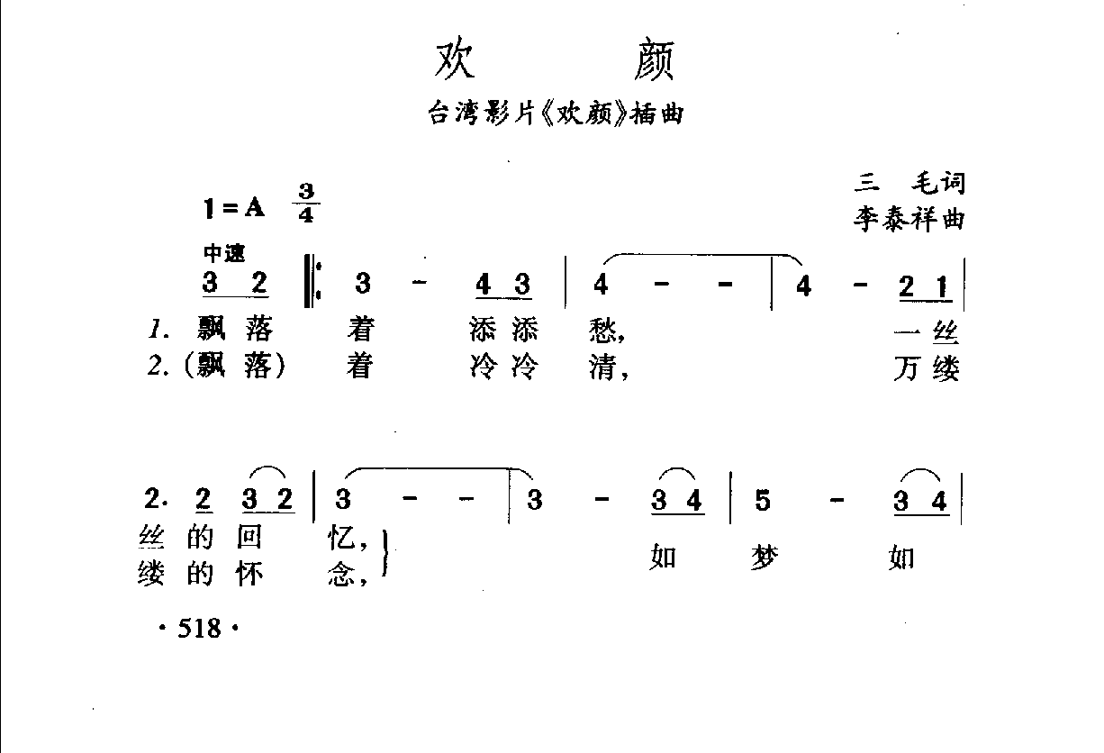 欢颜(台湾影片《欢颜》插曲)三毛调李泰祥曲