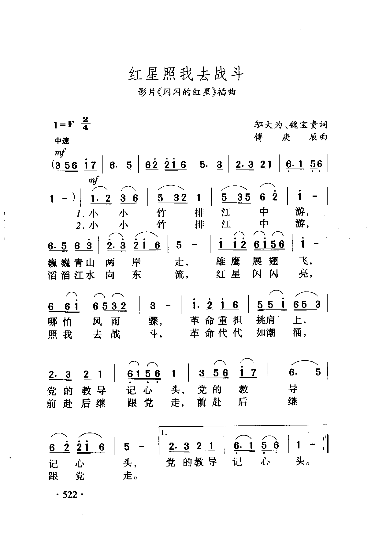 红星照我去战斗(影片《闪闪的红星》插曲)鄂大为、魏宝贵词 傅庚辰曲