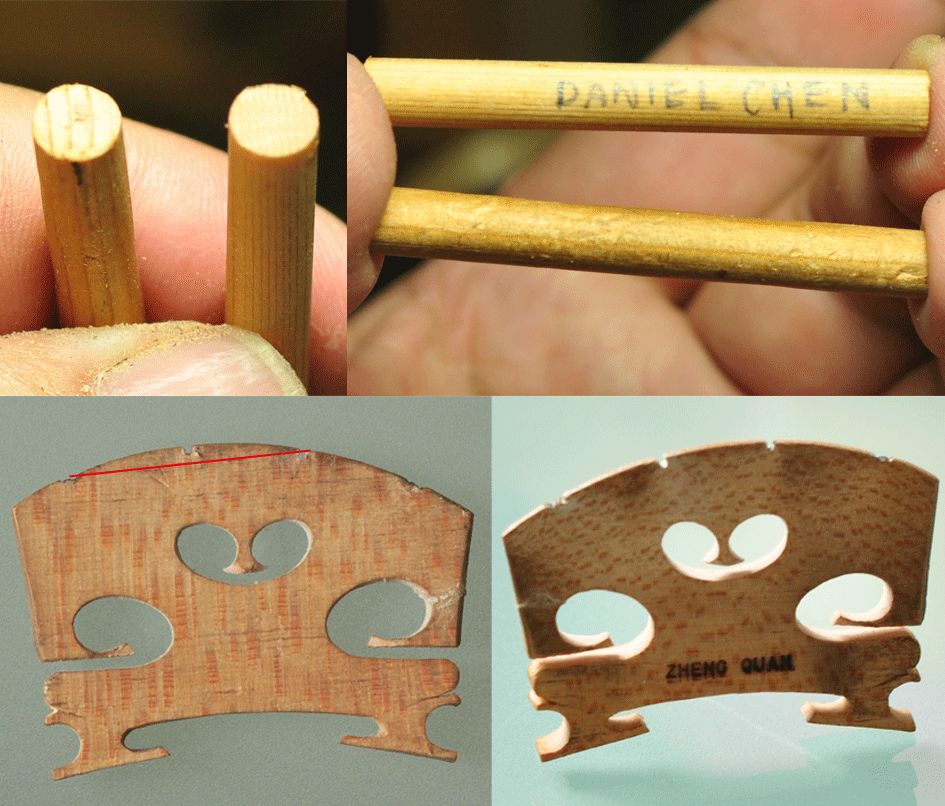 如果琴的声音过于明亮,甚至发噪。可选木料硬一点的或码体稍大一点的。码脚不要过薄,码体也应稍厚些。这样可使噪亮的琴音有所改善。当然,码的高度和薄厚应适当,薄厚不能超出正常范围的lmm。调码是一件需要细心的工作,应一点点试着做。