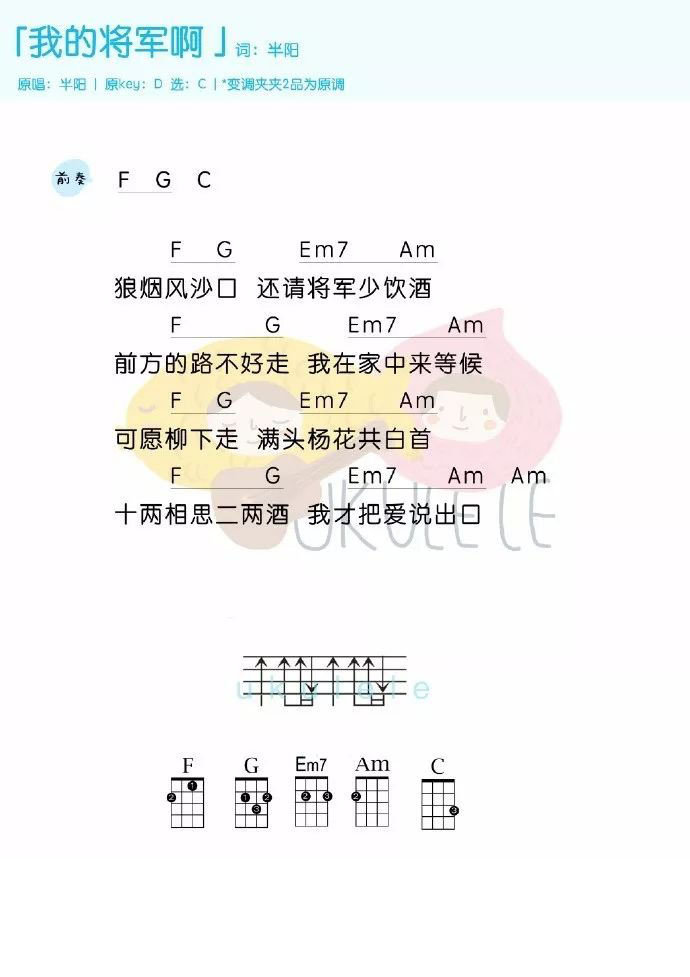 《我的将军啊》尤克里里曲谱 高清电子版乐谱歌词图片是器乐学习网于2022年03月03日 10:08:52更新分享的尤克里里曲谱;资源收录于尤克里里曲谱栏目中;器乐学习网免费分享《我的将军啊》尤克里里曲谱 简谱与五线谱歌谱图片,欢迎在线免费下载;器乐学习网无需注册会员,直接免费下载各类乐器学习资源及乐谱。