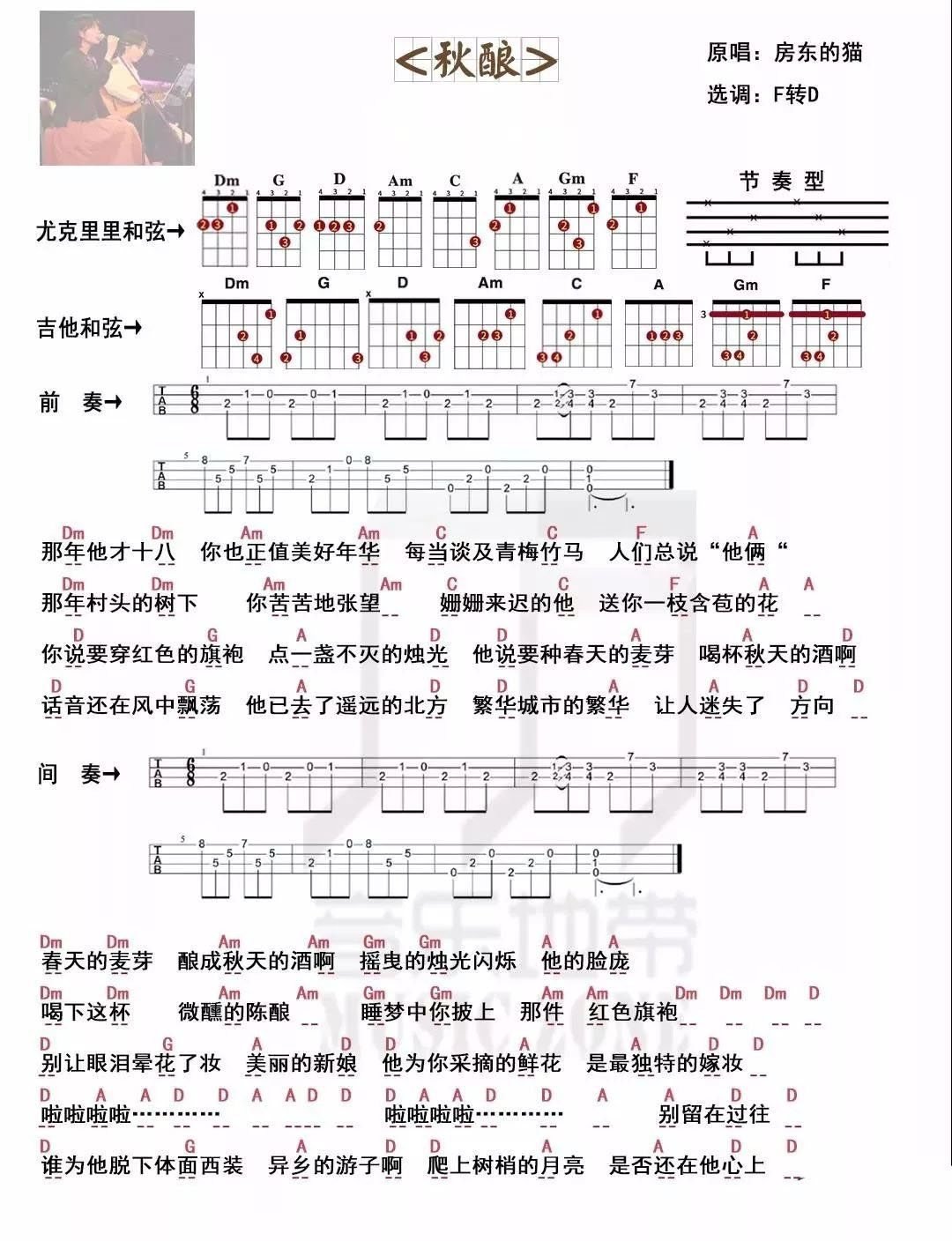 《秋酿》尤克里里曲谱 高清电子版乐谱歌词图片是器乐学习网于2022年03月03日 10:09:42更新分享的尤克里里曲谱;资源收录于尤克里里曲谱栏目中;器乐学习网免费分享《秋酿》尤克里里曲谱 简谱与五线谱歌谱图片,欢迎在线免费下载;器乐学习网无需注册会员,直接免费下载各类乐器学习资源及乐谱。
